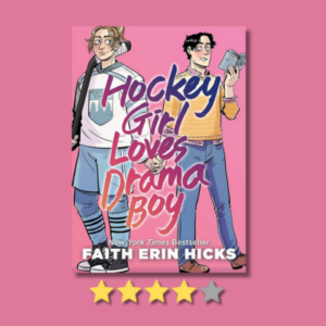 Faith Erin Hicks’s graphic novel, Hockey Girl Loves Drama Boy, follows Alix, a determined and talented high school hockey player who is intensely focused on her sport and preparing to try out for an elite national team. Early in the story, a confrontation with her team captain escalates into a physical altercation that threatens her coach’s recommendation for the camp. Because Alix is so focused on hockey and has little social life outside of the rink, she reaches out to a classmate, Ezra. He is a calm, confident drama club student that Alix asks for help on learning how to manage her emotions. Ezra, a bisexual teen who has experienced bullying and confrontation himself, approaches those interactions with confidence and grace. As the two spend more time together, their unlikely friendship gradually grows into something deeper.