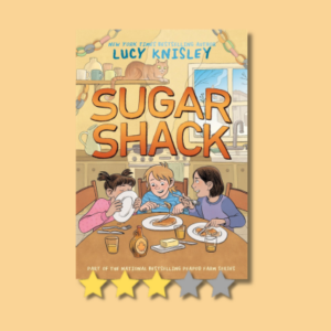 Lucy Knisley’s third book in the Peapod Farm graphic novel series, Sugar Shack, follows Jen and her family’s continued adventures of farm life and navigating the dynamics of a blended family. This installment concentrates heavily on outdoor farm life and the process of harvesting maple sugar. Jen is the central character, and the story follows her as she joins 4H, meets new people, and leans more into drawing as a creative outlet. Meanwhile, Andy prepares for her bat mitzvah and Reese discovers a new love of cooking.